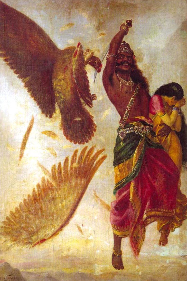 Nella mitologia indù Jatayu, il dio-avvoltoio, è un salvatore. La sua storia è legata al rapimento della dea Sita, moglie di Rama, il dio considerato da alcune tradizioni induiste come l’essere supremo. Si racconta che Sita fu rapita dal demone Ravana e imprigionata sulla Git Bahari, la “montagna degli avvoltoi”, e che Jatayu tentò di salvarla. Fu un’impresa vana, perché il demone gli spezzò le ali ed egli precipitò sulla terra; ma il suo sacrificio viene ancora ricordato. Le rocce del Kerala conservano i solchi del becco di Jatayu durante il suo ultimo respiro.