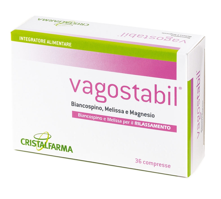 Cristalfarma, azienda storica nel settore della fitoterapia, ha formulato vagostabil®, un integratore mirato ed efficace, volto a contrastare i disturbi legati a situazioni di tensione nervosa, stress e irritabilità, favorendo rilassamento e benessere psico fisico. La sua formulazione comprende melissa, biancospino e magnesio, che insieme donano calma e armonia. La melissa, coltivata in gran parte d’Europa, si trova comunemente in campi soleggiati o vicino a vecchi cascinali, fiorisce in estate regalandoci piccoli fiori bianchi e le foglie ovali di un bel verde vivo. Ha proprietà calmanti e una spiccata attività rilassante. Agisce inoltre in modo efficace sule tensioni gastriche, legate a situazioni di stress ed è distensiva nei soggetti sovraffaticati.