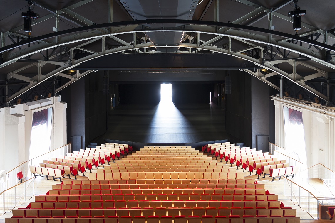 Tutto sembra preludere ad un altro ben più fascinoso gioco o finzione, ovvero quella teatrale o musicale che si consumerà di lì a poco nell’adiacente sala da mille posti intitolata a Théodore Turrettini, ingegnere progettista dell’antica officina idraulica che a fine Ottocento era stata edificata tra quelle mura. A quell’epoca le forces motrices erano quelle necessarie a convogliare, attraverso appositi sistemi di pressione, le possenti acque del Rodano, utilizzate non solo a fini di approvvigionamento idrico ma anche come preziosa fonte di energia idroelettrica.