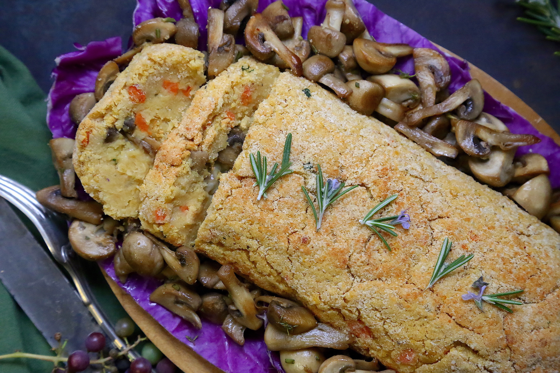 Polpettone di lenticchie rosse con cuore filante di formaggio e funghi