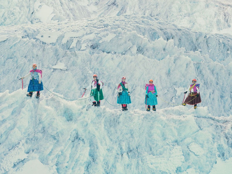 Le cholitas escaladoras per anni hanno lavorato come guide, portatrici e cuoche d’alta quota. Poi, nel 2015, hanno deciso di iniziare la propria avventura in alta montagna, sfidando la concezione maschilista legata all’alpinismo e alla società.