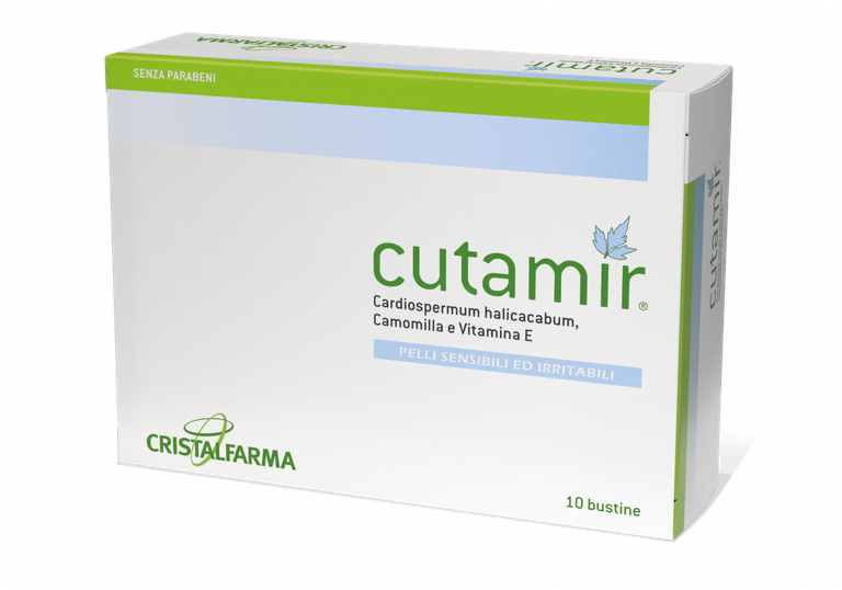 Cristalfarma, azienda nel settore della fitoterapia, ha formulato cutamir®, una crema specifica per pelli sensibili e irritabili, ideale per tutte le situazioni in cui la cute necessiti di sollievo, con componenti fitoterapici mirati allo scopo. Cardiospermum halicacabum, camomilla e vitamina E sono i componenti di questa crema nata per alleviare tutti i problemi che una pelle sensibile ed irritabile può essere chiamata a dover sopportare.