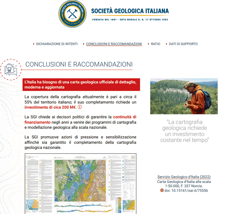 La Società geologica italiana da anni collabora con Ispra per promuove e divulgare a tutti i livelli della società l’esigenza che l’Italia si doti finalmente di basi cartografico geologiche aggiornate, versatili e moderne, che rappresentano un fondamentale strumento di conoscenza di base per un Paese avanzato che voglia affrontare consapevolmente ed efficacemente le inevitabili sfide legate alla tutela, gestione e pianificazione del proprio territorio e all’utilizzo sostenibile delle proprie risorse.