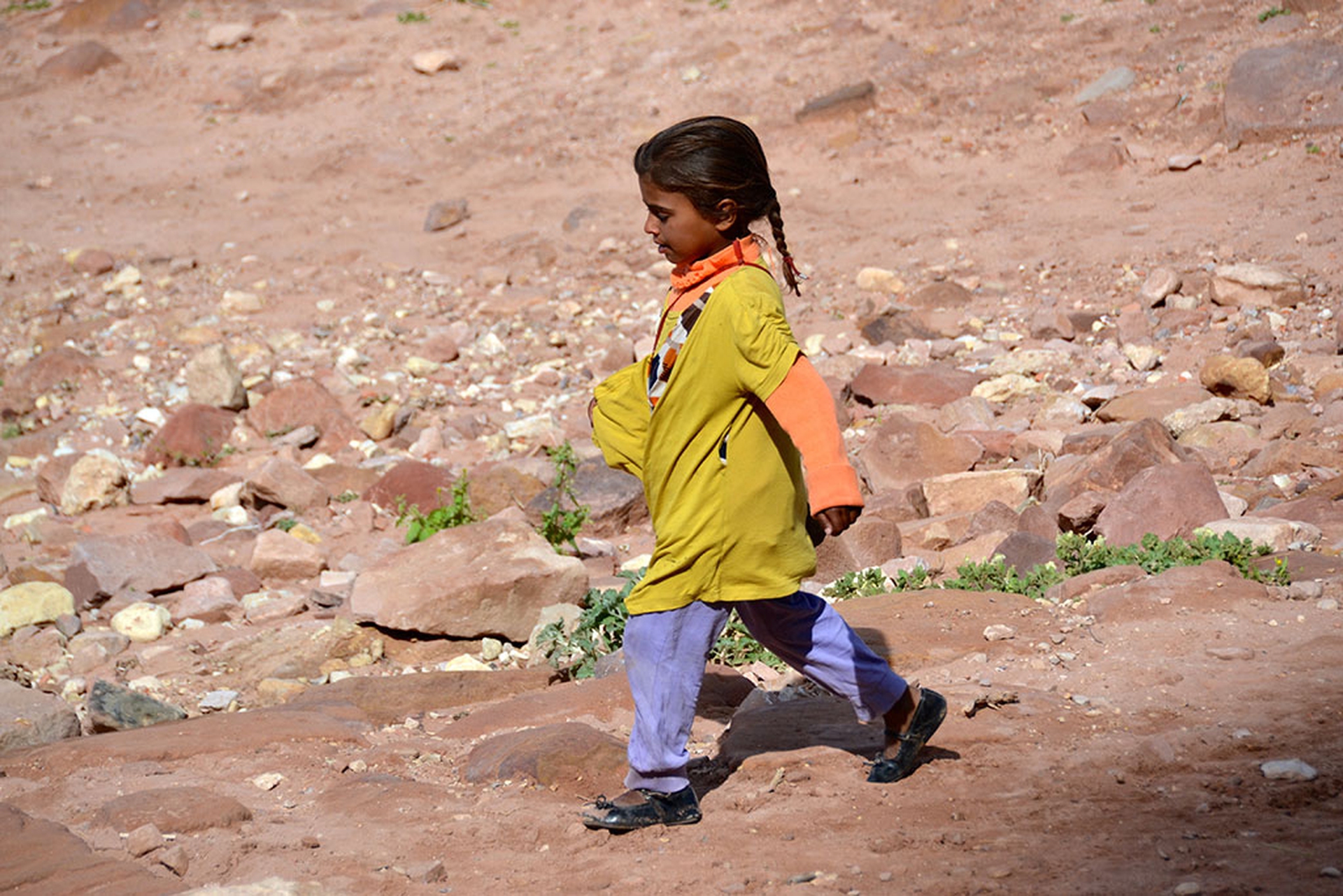 Così il giorno seguente presi lo zaino, chiesi un passaggio e andai verso il confine con la Giordania. Non so perché proprio la Giordania, però mi attraeva. Avevo due possibilità, una volta passato il confine: il deserto o le montagne. Avevo la sensazione che nel deserto non avrei trovato nulla, quindi scelsi le montagne verso Petra, la città antica, con le sue rovine stupende tra le rocce rosse. Ricordo perfettamente quella mattina: mi alzai prima dell’alba, attraversai Petra alle prime luci del mattino, ed era un posto incredibile, misterioso, mistico. Un’esperienza incredibile; ma ancora una volta non avevo trovato quello che stavo cercando. Però all’orizzonte vidi delle montagne, le stesse montagne di roccia rossa che circondavano Petra. Bene, lasciai il cammino per volgermi in quella direzione, senza seguire i sentieri e camminai tutto il giorno, fino a notte.