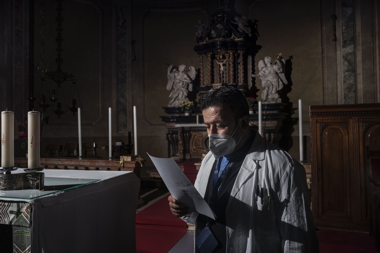 Nembro è un comune nella Val Seriana di undicimila anime e poco più. Durante la pandemia è tra i più colpiti e tra i primi ad entrare in zona rossa, ma anche tra quelli che finiscono nella tempesta burocratica tra Regioni e Governo. I negozi sono per la maggior parte chiusi, c’è un sole flaccido di fine giornata che si spegne dietro le montagne e un silenzio rumoroso per le strade.