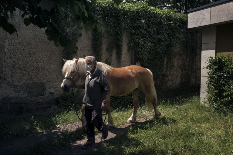 Michela Riceputi si sistema i capelli e si accomoda sotto un’ombra ricavata dalle fronde un albero. Lavora come psicologa e psicoterapeuta nel Centro, e coordina l’attività. “L’idea era quella di offrire alla persona uno spazio in cui ritrovarsi, sia fisicamente che emotivamente, all’interno di una relazione sana, non contagiosa”. Toccare un cavallo senza doversi mettere i guanti e col timore di essere infettato, di riscoprire il piacere del prendersi cura. L’intervento è una sorta di ‘accompagnamento terapeutico’: ogni volontario ha a disposizione massimo cinque incontri a settimana, nei quali sceglie il “cavallo che lo colpisce di più, per affinità o diversità”, dove lo accudisce e pulisce. Michela parla di “spontaneità della relazione” quando descrive il rapporto che si innesca in quei momenti, perché nell’affanno dell’emergenza ogni sussulto emotivo sembra essersi congelato. Partecipano in tutto in 96 operatori, di cui 76 completano il ciclo di incontri. Spiega Michela che per molti di loro questo contatto li mette di fronte alla loro fatica – “so di non poter più toccare il paziente”, perché nella pandemia non si è preso cura, “ma solo tentato di salvare”.