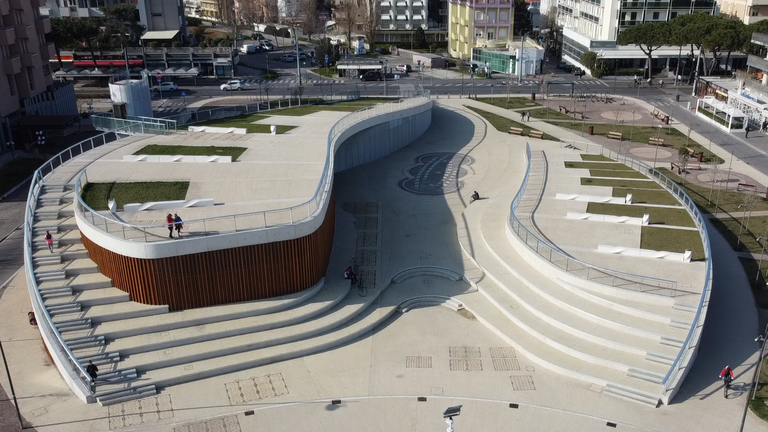 È l’Arco onorario più antico conservato nell’Italia settentrionale e segna l’ingresso alla città per chi proviene dalla via Flaminia, che collega Roma a Rimini. Eretto nel 27 a.C., celebra la figura di Ottaviano Augusto. Non lontano da qui, i resti dell’anfiteatro romano risalente al secondo secolo d.C., edificato all’epoca nelle vicinanze dell’antico porto. Costruzione imponente, la sua ampiezza era di poco inferiore a quella del Colosseo e ospitava almeno dodicimila spettatori.
