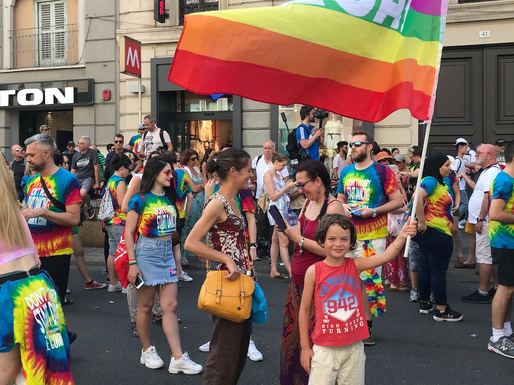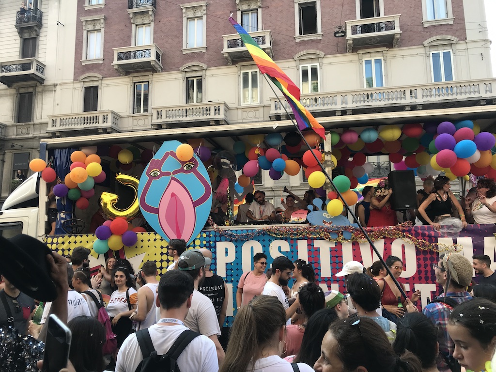 300mila persone, secondo gli organizzatori, hanno sfidato il caldo soffocante per manifestare a nome dell’inclusione, popolando le vie tra piazza Duca d’Aosta – piazzale della Stazione Centrale e punto di partenza del corteo – passando per corso Buenos Aires e arrivando in piazza Oberdan, nel cuore del quartiere gay di Porta Venezia. Qui il grande concerto finale ha visto esibirsi Baby K, Levante e Bianca Atzei, e salire sul palco anche Pierfrancesco Majorino, assessore alle Politiche sociali del Comune di Milano, e Gianmarco Negri, primo sindaco trans d’Italia. Zone solitamente popolate dalle folle dello shopping nel fine settimana sono state invase dai colori, dalla gioia, dagli striscioni “love is love” (l’amore è amore”) e dal canto “la prima volta fu rivolta“, in riferimento a Stonewall.
