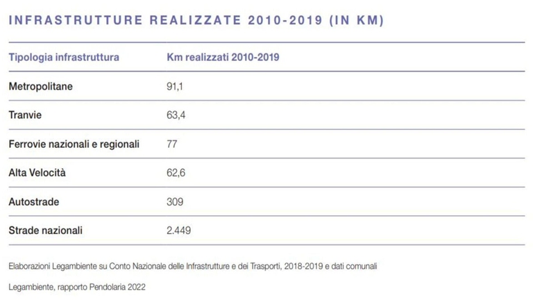 Dall’altra parte abbiamo continui interventi su strade e autostrade, tanto che negli ultimi anni questo settore ha intercettando il 60 per cento degli investimenti (dal 2002 al 2019). Emblematici i dati del Conto nazionale trasporti per quanto realizzato dal 2010 al 2019: 309 chilometri di autostrade, 2.449 chilometri di strade nazionali, a fronte di 91,1 chilometri di metropolitane e 63,4 chilometri di tram.