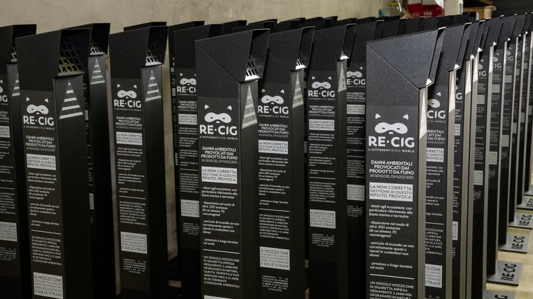Posacenere in luoghi strategici, un servizio di raccolta di mozziconi e un brevetto per trasformarli in un nuovo materiale: Re-Cig è un esempio da manuale di upcycling.
