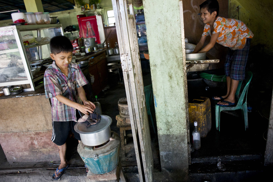 Sono sempre più numerosi i bambini birmani che dalle campagne si recano nelle metropoli in espansione in cerca di lavoro dopo l’apertura al libero mercato.