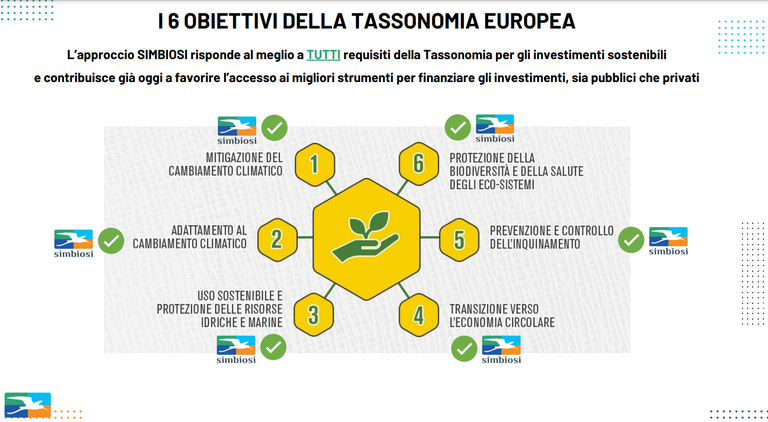 “Il modello di Simbiosi è in grado di perseguire contemporaneamente tutti e sei gli obiettivi ambientali fissati dalla tassonomia europea, con un approccio olistico, trasformando in questo modo le iniziative dall’essere semplicemente eco-compatibili (laddove per eco-compatibili si intende, tra le altre cose, il contribuire positivamente ad almeno uno dei sei obiettivi ambientali e non produrre impatti negativi su nessun altro obiettivo) a essere effettivamente sostenibili nel tempo, congiungendo e collegando tra loro le attività e i processi produttivi con le comunità e i territori che le ospitano, attraverso principi di economia e agricoltura rigenerativa”, conferma Piero Manzoni.
