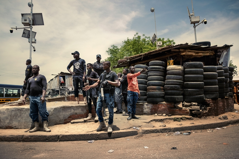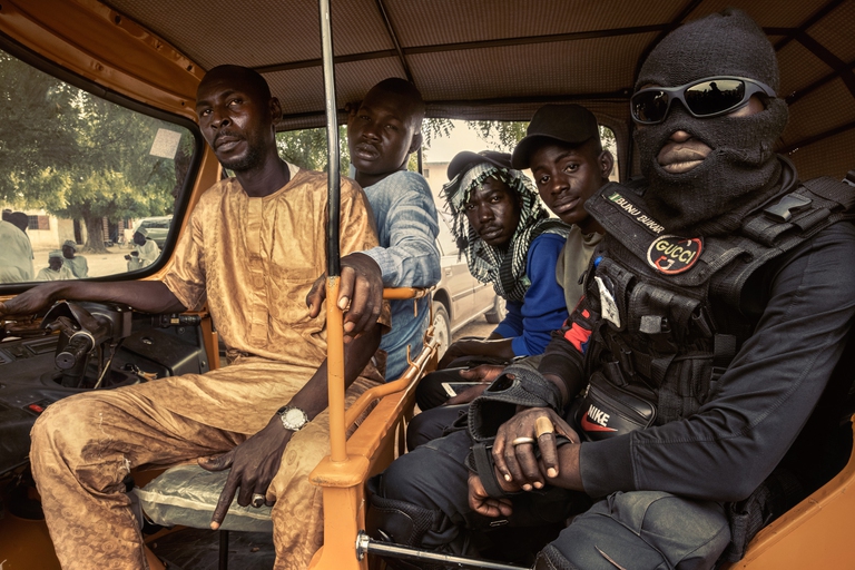 Poco fuori dalle mura cittadine c’è un terrapieno, è il limite fisico tra le zone sotto controllo di Boko Haram e la città di Maiduguri. Soldati dell’esercito regolare e milizie di cittadini volontari presidiano il confine. I militari sono continuamente in contatto con le altre postazioni attraverso le radio e dietro ad alcuni pneumatici che formano una barricata è stata posizionata una mitragliatrice. A spiegare la situazione, proprio sulla linea del fronte, è Iaku Mohamed, uno dei leader della Civilian joint task force, la formazione di cittadini che volontariamente hanno deciso di armarsi e dare il proprio supporto alle forze governative nella lotta contro il terrorismo. “Questo avamposto è la prima linea perché da qui i terroristi fanno le loro incursioni in città. È rischioso, ma è un sacrificio che noi dobbiamo fare per la nostra gente e il nostro Paese. Tutti dobbiamo dare il nostro contributo nel combattere il terrorismo”.